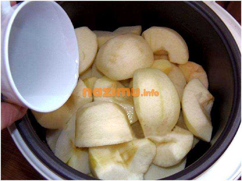 Кожуру у яблок счищать не нужно, она нужна чтобы дольки держали форму и не разваривались.