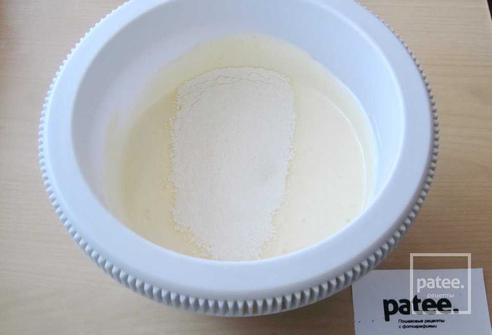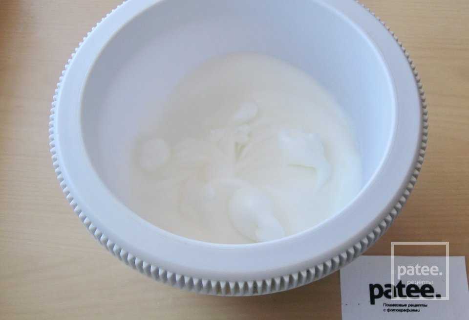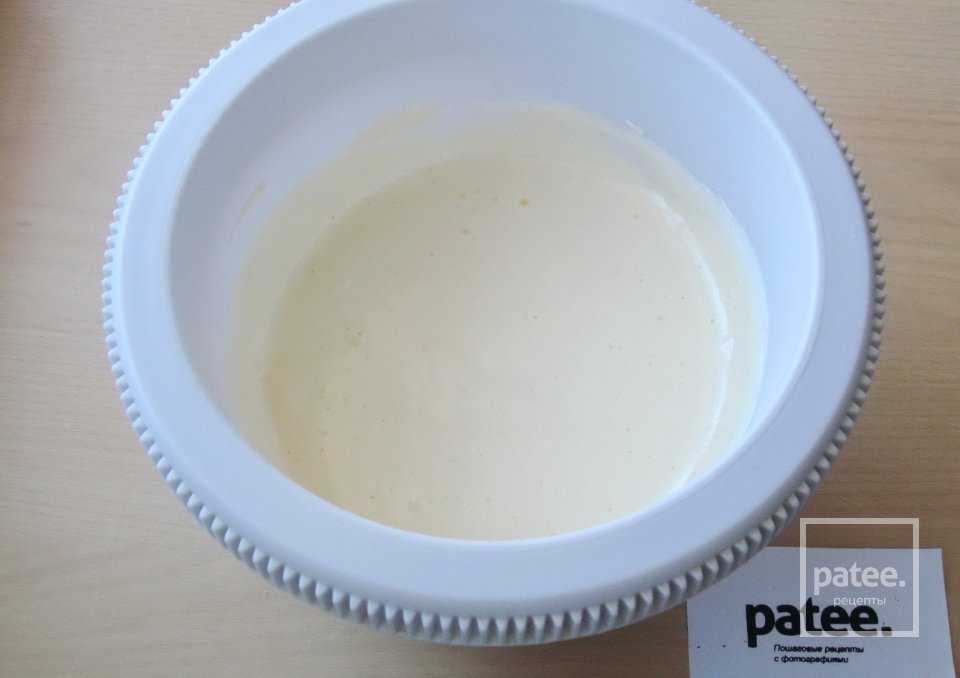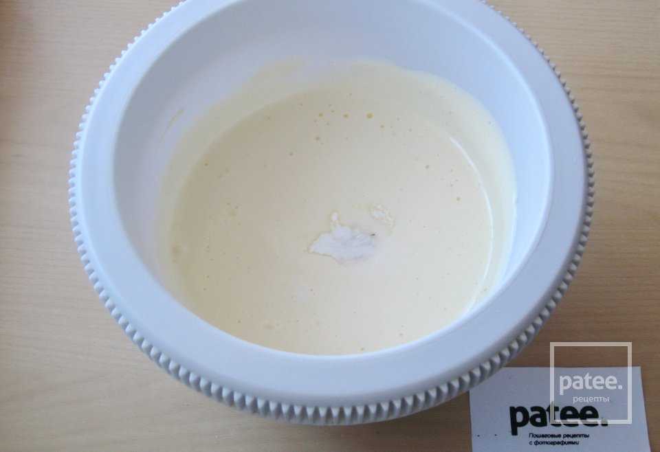 - Для начала приготовим тесто. Взбейте миксером три желтка с одним неполным стаканом сахара, а белки отдельно с щепоткой соли. Соедините обе массы, просейте к ним один стакан муки и добавьте немного соды, гашеной уксусом.