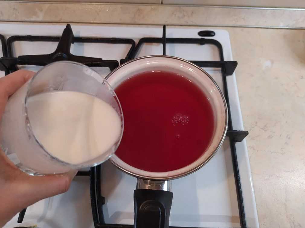 - Перелейте полученный сок в кастрюлю, всыпьте сахарный песок. Не переставая помешивать, доведите до закипания.