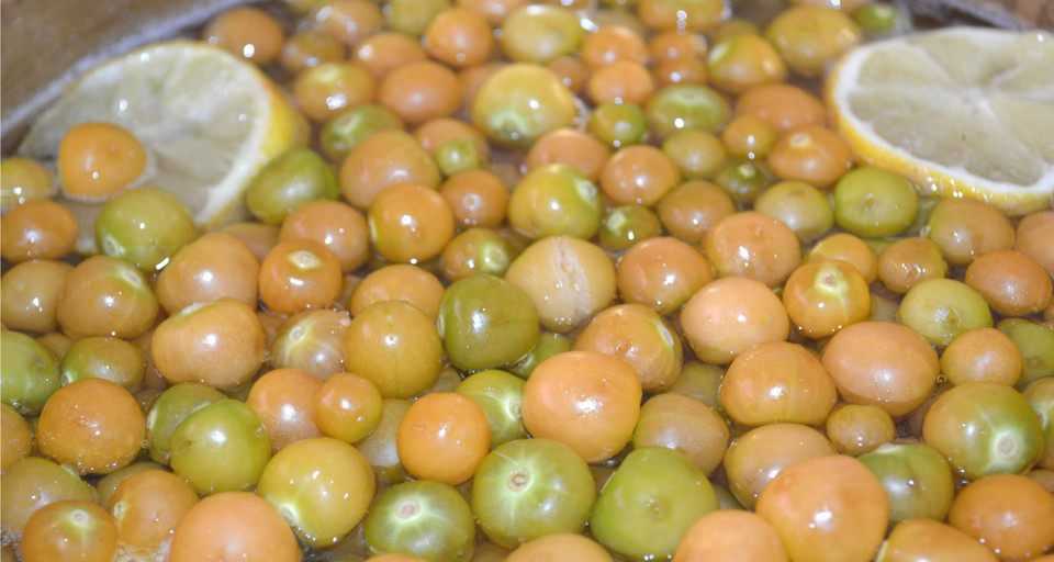 После покупки спелых ягод необходимо удалить чашелистики, обдать продукт кипятком и тщательно промыть под водой для удаления маслянистого вещества. Оно придает даже сладким плодам жгучий, горький привкус.