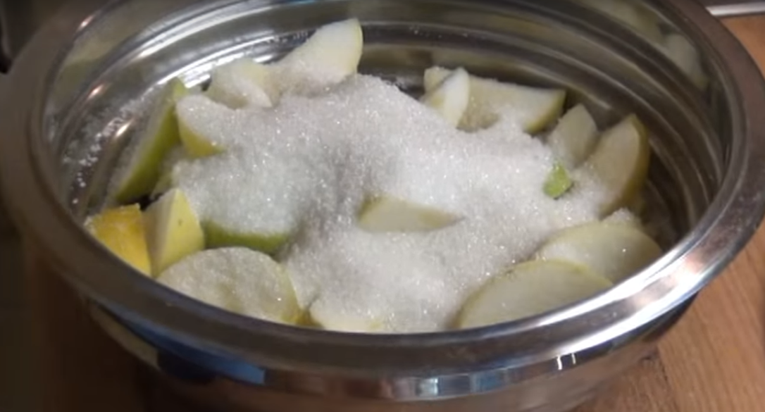 Накрываем миску крышкой или полотенцем и оставляем ее до тех пор, пока яблоки не пустят сок. Обычно это занимает от 12 до 20 часов.