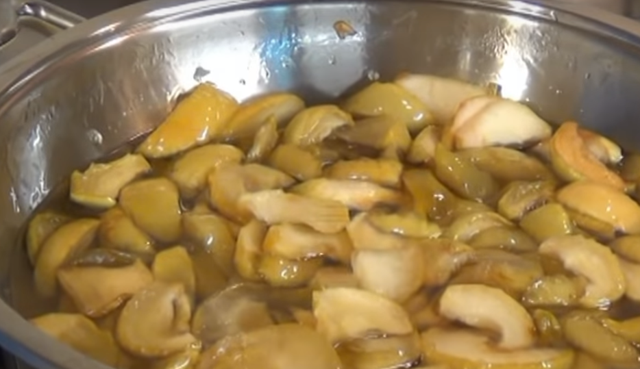 Шаг 5. Яблоки простояли в сиропе еще ночь и стали практически все прозрачными.