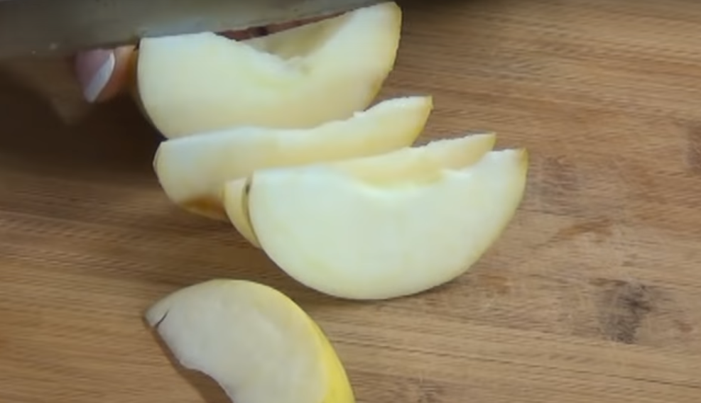 - Яблоки следует помыть, удалить сердцевину и разрезать на дольки среднего размера