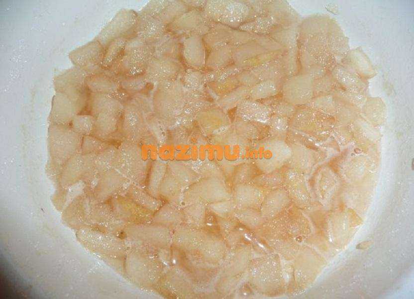 - Лимон моют, разрезают, выдавливают сок. Грушу засыпают сахарным песком, заливают соком лимона, настаивают на протяжении 1 часа.