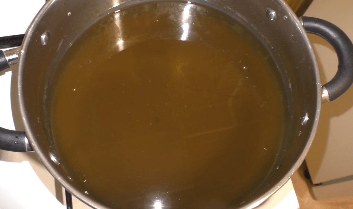 - На следующем этапе нужно при процеживании оставить отвар, а цветочки и кусочки лимона выбросить, они больше не нужны. Процеживайте через двойной слой марли, которую надо застелить в дуршлаг. Когда жидкость стечёт, хорошо отжать исходный продукт.