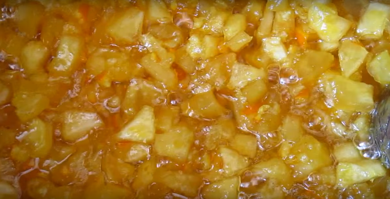 При такой температуре и равномерному распределению тепла из ингредиентов получится сироп, который и станет основой для будущей консервации.