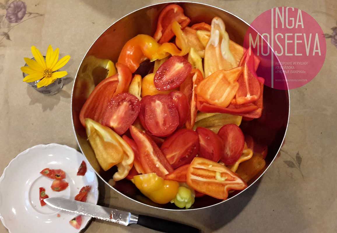 Моем, чистим перцы и помидоры, режем на части, подходящие для вашей мясорубки.