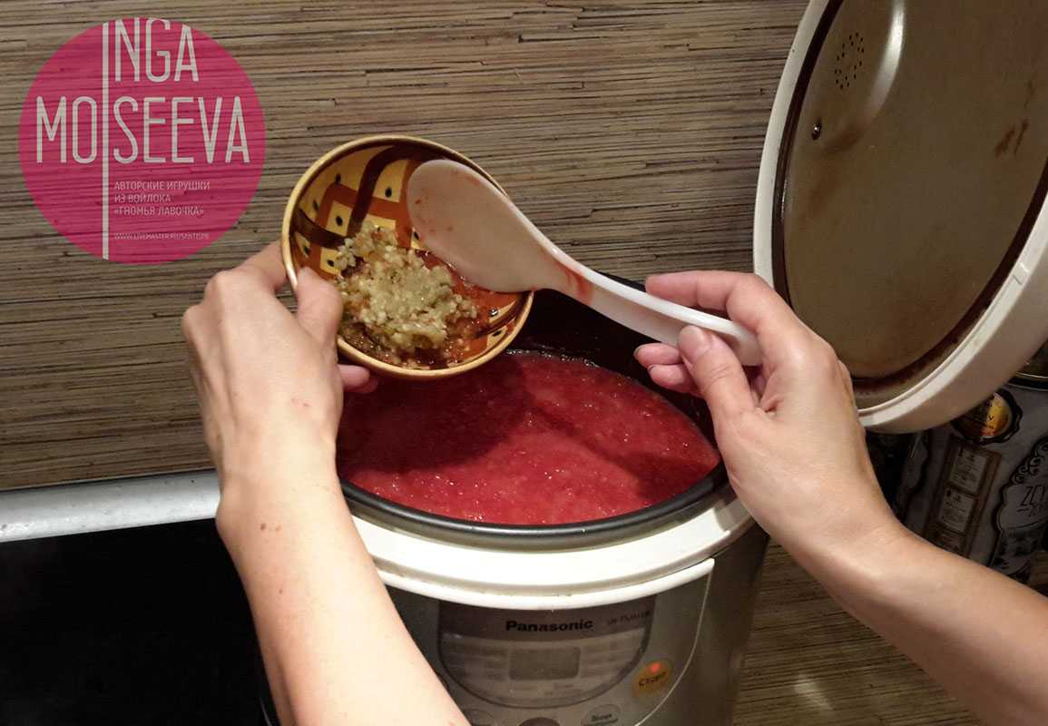 Добавляем чесночную кашицу в чашу ровно через полчаса от начала готовки, то есть когда на таймере нашей мультиварки высветится остаточное программное время 30.