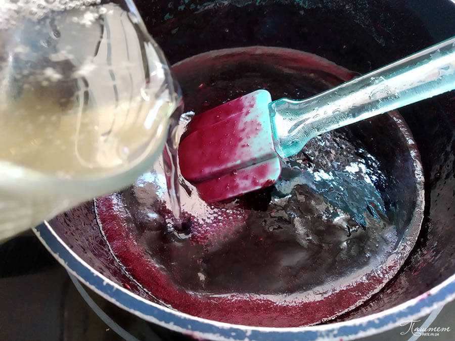 - За это время придется помешивать заготовку и снимать с него пенку. Консистенция будет не густая, а жидкая за счет добавления воды.