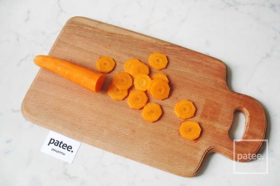 Морковь также нарезать тонкими кружками.