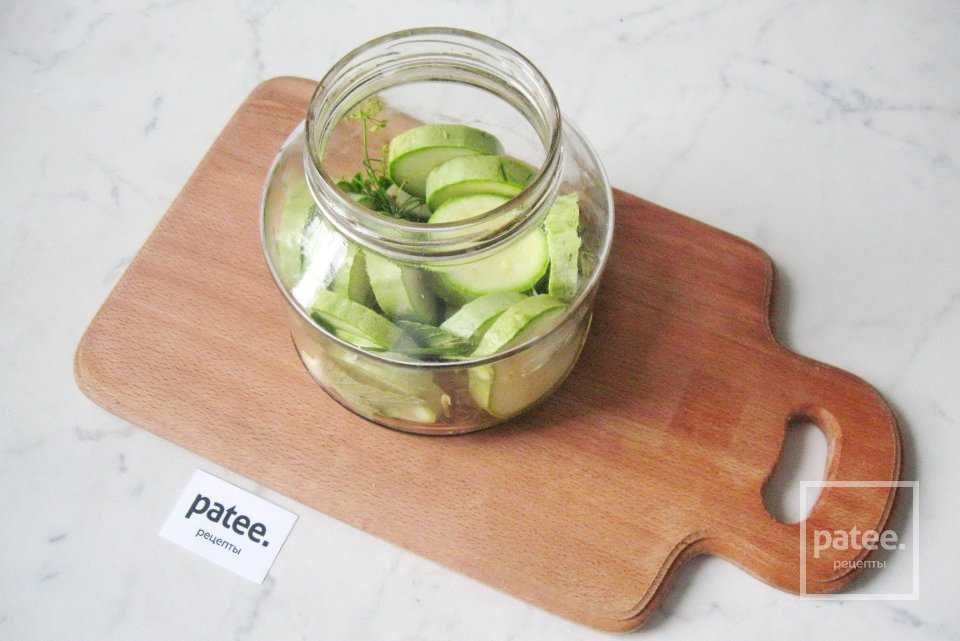 Заполните банку на 1/3 кабачками.