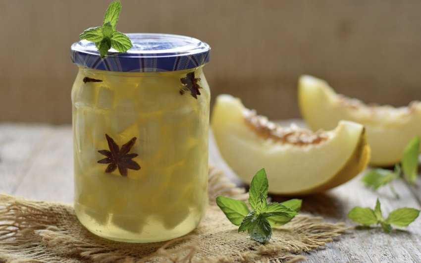 Сироп в этом рецепте готовится с добавлением портвейна и столовых пряностей, что придает оригинального дынного аромата и необыкновенного вкуса консервации. Гурманы оценят подачу такого блюда к столу.