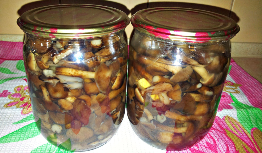 - Готовые грибочки разложить по банкам, залить маринадом, в последний момент перед закрытием крышки в каждую банку добавить 1 ложку растительного масла.