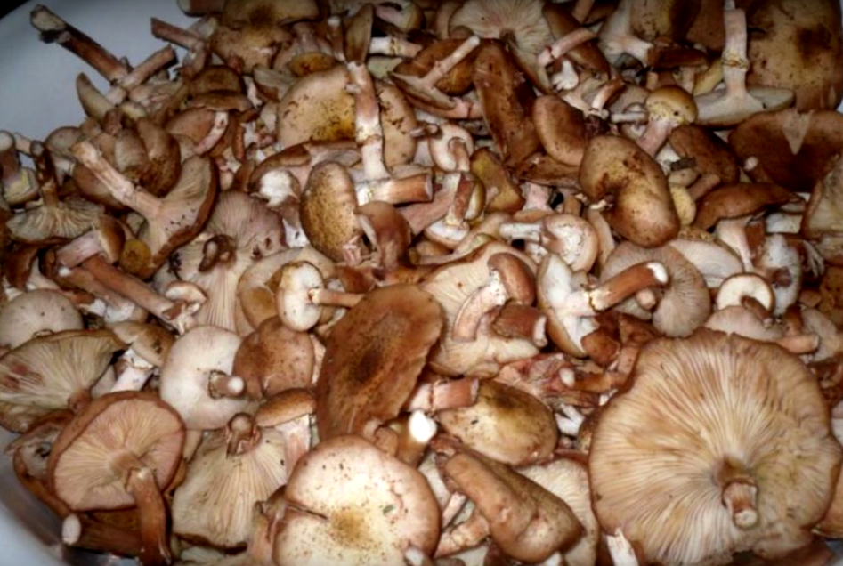 Собранные грибы перебираем, сортируем по разным посудинам. Маленькие можно замариновать целиком, крупные экземпляры и ножки — прокрутим через мясорубку.