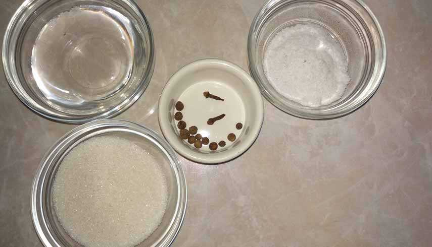 - Уксус (70%) – 9 ч. л. (по 1 ч. л. на баночку 1,5 литровую)